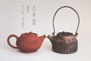 2026年3月7日(土)〜16日(月) 横浜市のsumicaさんにて個展を開催いたします。 定番のしょうゆ差しにも新しい加飾が仲間入り。 ぜひご覧ください。 作家在廊は7日 定休日11日 sumica→