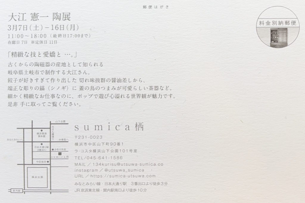 横浜 sumica栖 2026年2月19日 最終更新日時 : 2026年2月19日 oenorikazu 2026年3月7日(土)〜16日(月) 横浜市のsumicaさんにて個展を開催いたします。 定番のしょうゆ差しにも新しい加飾が仲間入り。 ぜひご覧ください。 作家在廊は7日 定休日11日 sumica→